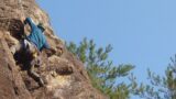 午前中の涼しいうちにシアターで2ルート[風呂屋の番台5.10a][私の彼は左利き5.11a]を登り、お昼からはビッグボルダー[アヒルのお尻5.9][マイティジェット5.10b]に移動してのクライミングでした。どのルートもまったく初めてのトライ! でした。まずは制限時間を15分と決めてトップロープで触り、その後リードで登ります。登ることに必死過ぎてムーブを覚えていない、焦り過ぎて足置きが雑になる、ムーブ起こしのタイミングが合っていない等、改善点が明確になりました。またリードクライミングではヌンチャクを掛ける動作とルートを登る動作の組み立て方が重要だということもご指導いただきました。今後のクライミングに活かせるようにトレーニングしていきたいと思います。(M)