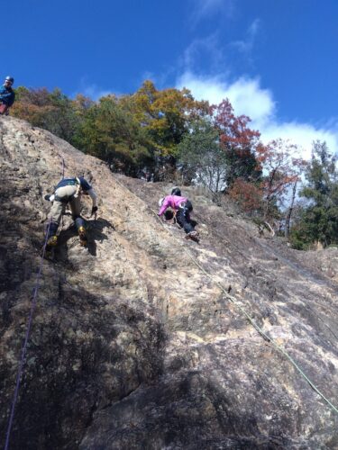 蓬莱峡広場の岩場で登攀後に岩場へ移動しロープによる岩場の登攀