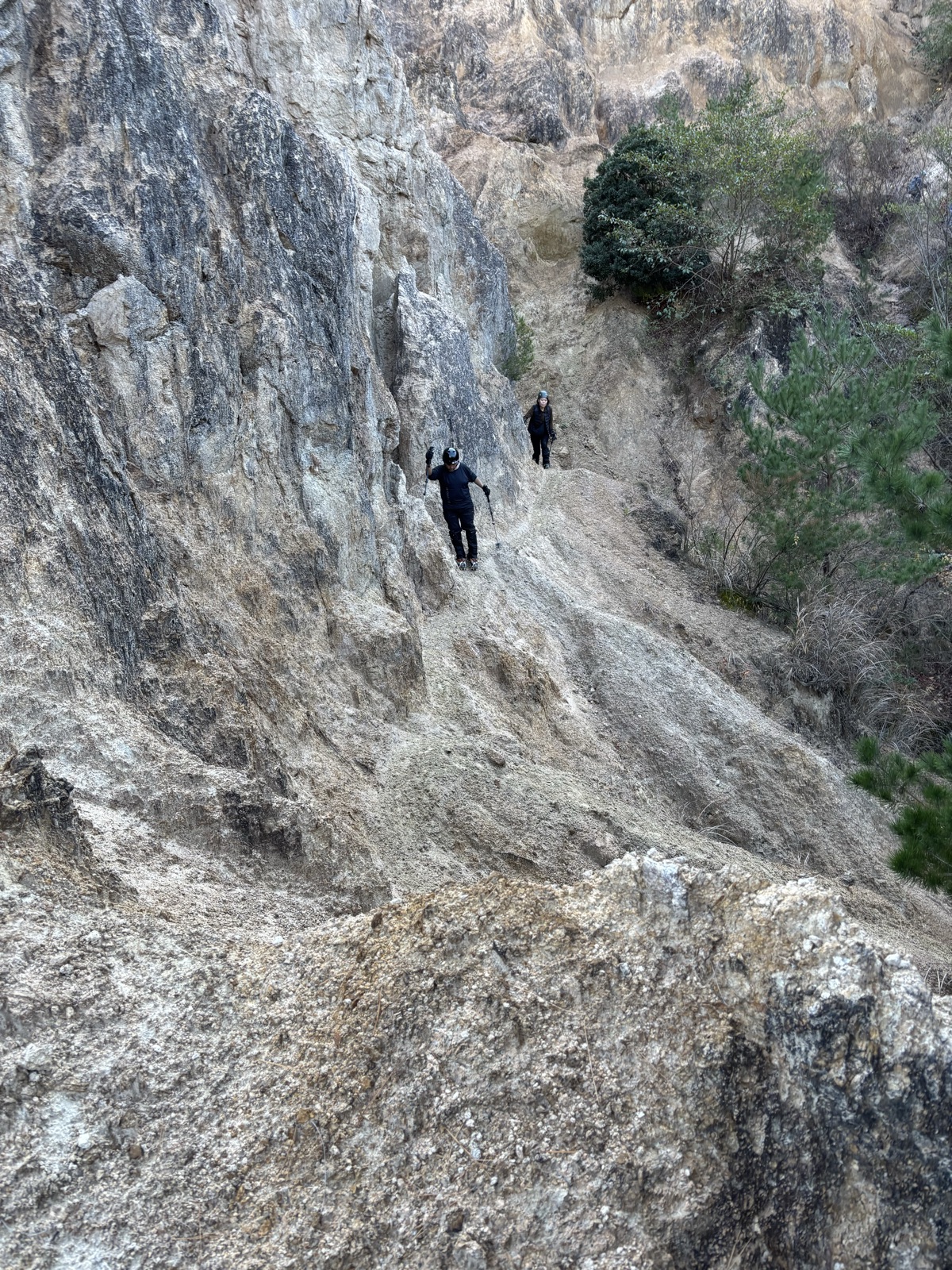 初めてのアイゼントレーニング。新品のアイゼンが泥だらけになりましたが、雪山を思い浮かべながら楽しくトレーニングできました。