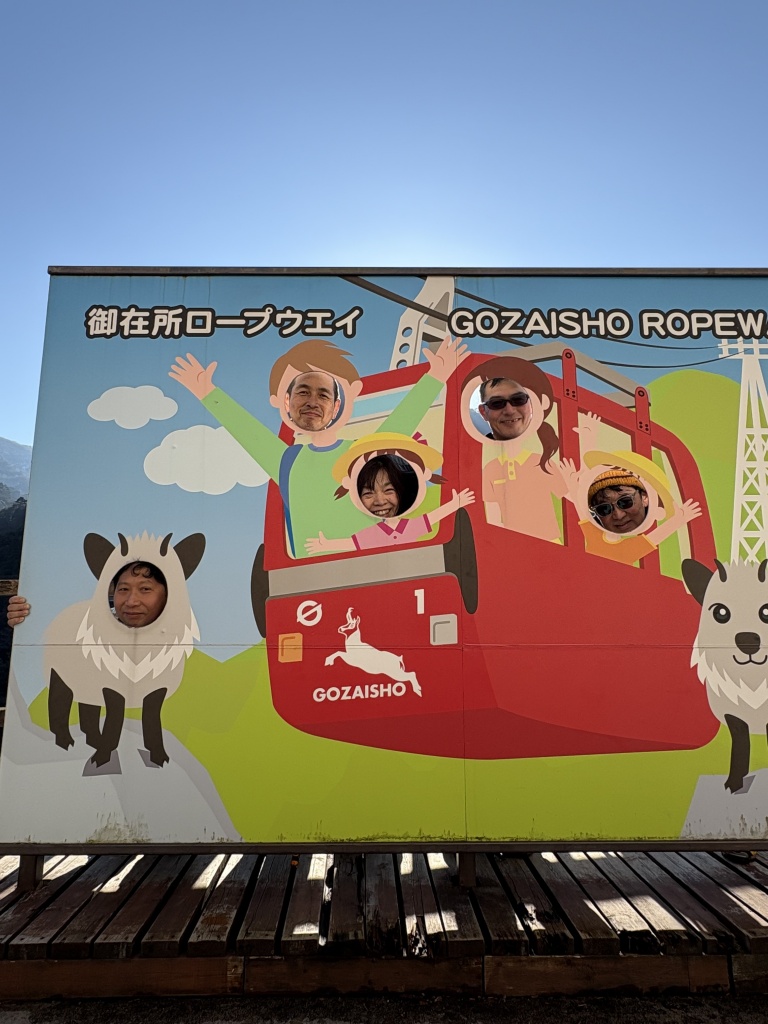 山頂のレストランで名物のカレーうどんを食べ、帰りに綺麗な温泉に入りました。