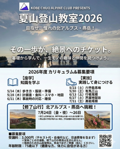 ※修了山行参加には、神戸中央山の会へ入会する必要があります。