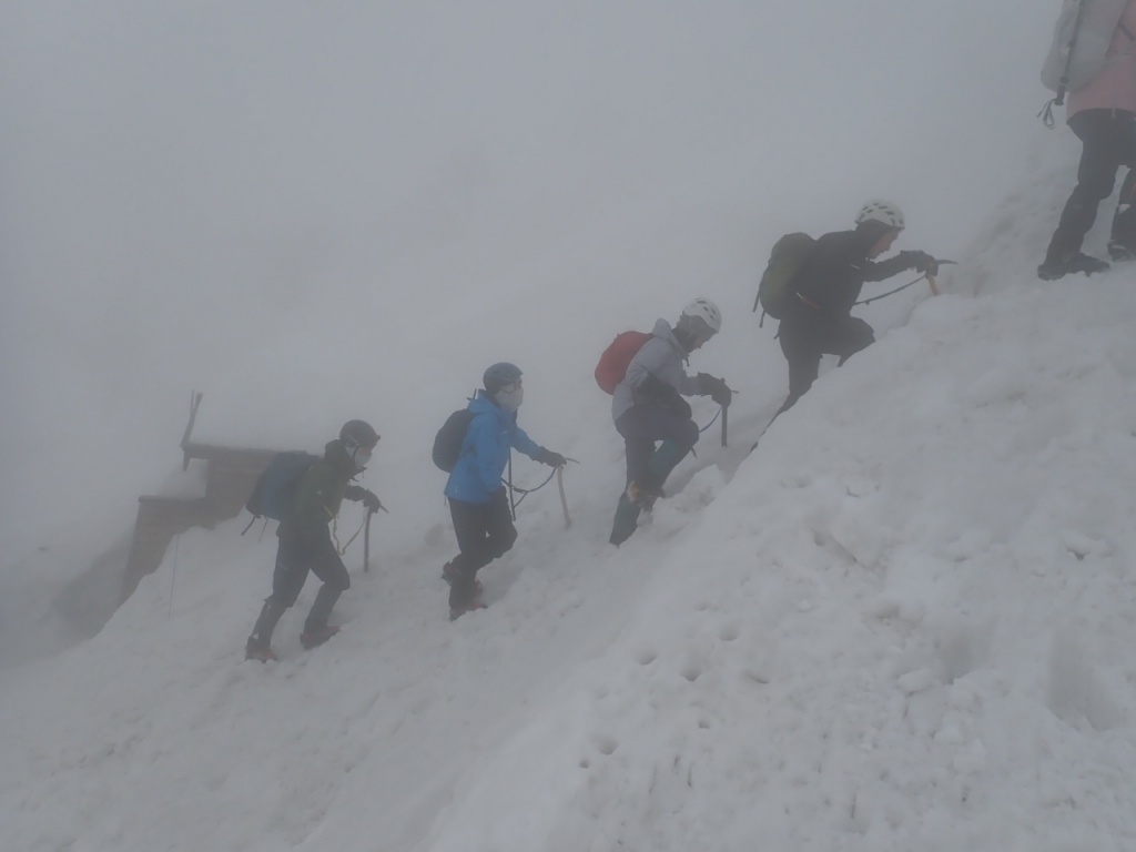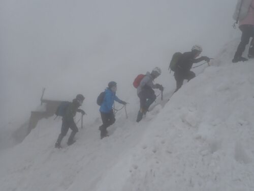 山頂からの景色は真っ白でしたが、いい経験ができました。