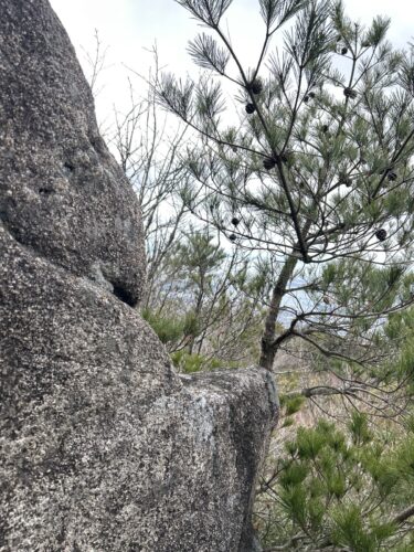 JR 住吉駅からバスで渦森橋へ移動し、そこから登山をスタート。序盤は急登が続きましたが、衣服調整をしながら無理のないペースでゆっくり進みました。段差の大きい場所も多く、次第に体も温まり汗ばむほどでした。天狗岩は、正面から見ると分かりにくい形でしたが、岩の後ろに回ってみると、特徴的な「天狗の鼻」を確認することができ何とか納得。