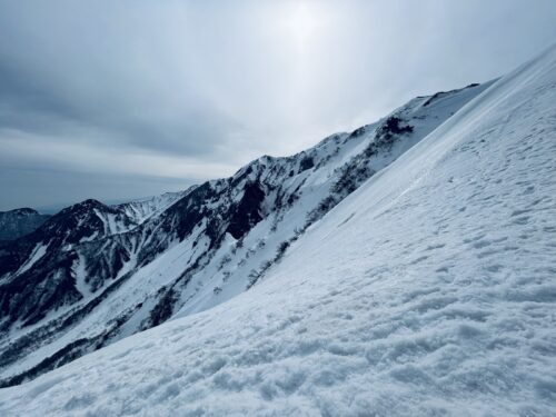 たっぷり睡眠を取った翌朝、いよいよ登山開始。登山道の雪はしっかり締まっており、歩きやすいコンデションで順調なスタートとなりました。しかし、延々と続く登りに「こんなにしんどかったっけ?」と言いながらも、一歩一歩進み無事に山頂へ到着。残念ながら青空こそ見えませんでしたが、視界がひどく悪くなることはなく、落ち着いた天候の中での登頂となりました。下山も安全に予定よりやや早く無事に下山。雪山の大山を仲間とともに歩き、声を掛け合いながら励まし合って登る時間は、やはり格別です。改めて、山は一人でも楽しいですが、皆で登る楽しさはそれ以上だと感じた山行でした。
